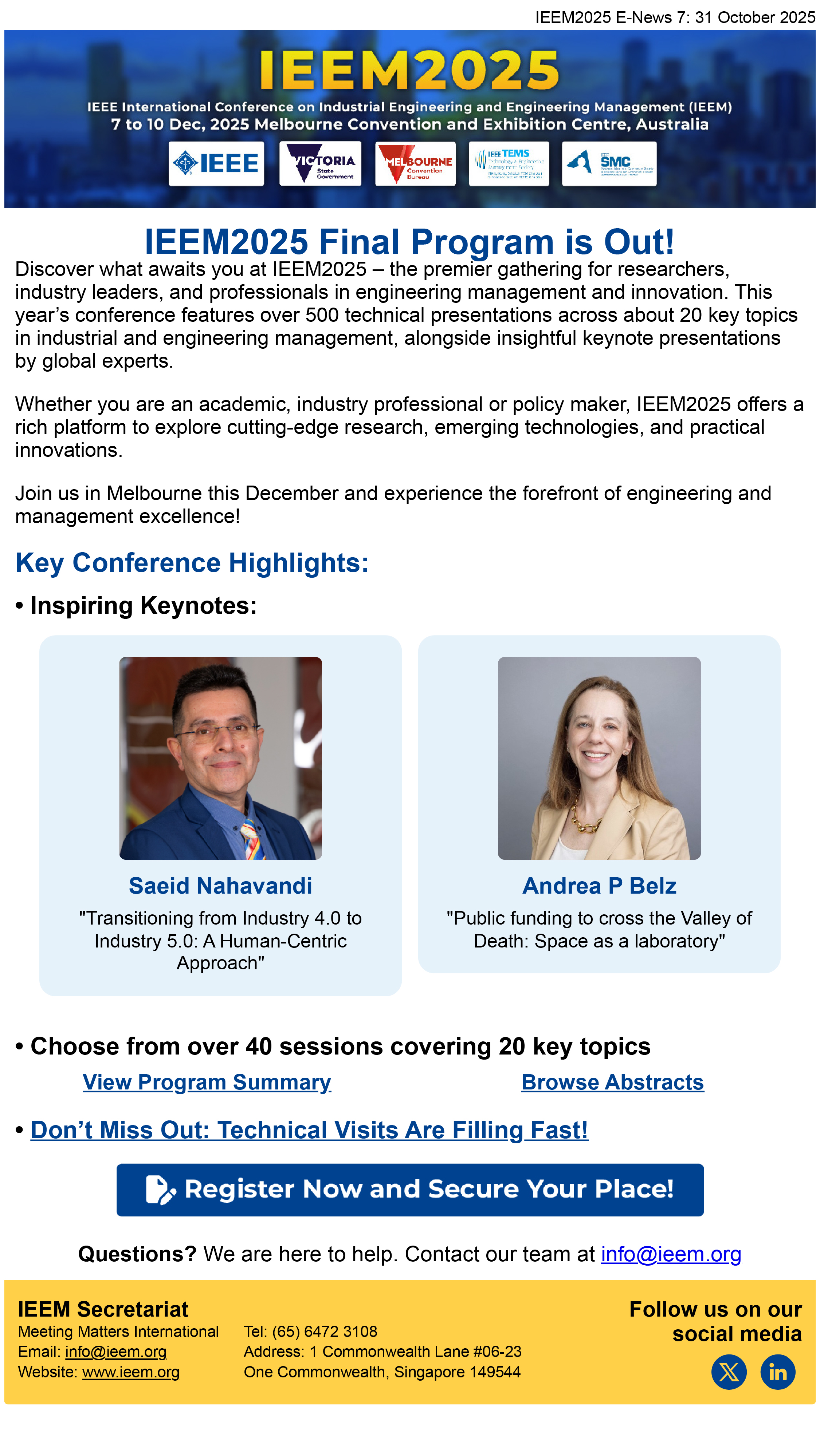 The “Looking Back” section offers a retrospective view of the recent IEEM conference, capturing key moments, highlights and insights.